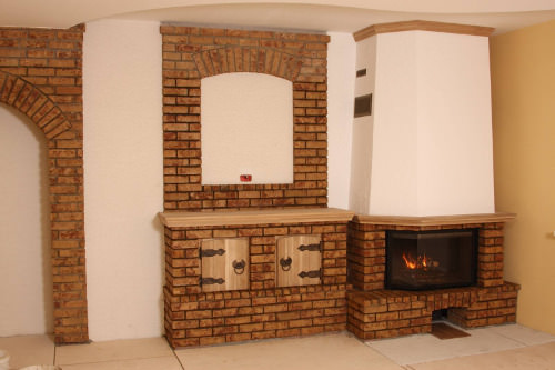 Ще один красивий та надійний матеріал для оформлення зовнішнього вигляду каміна – клінкерна цегла. Це дуже стійкий матеріал, тому, якщо дозволяє проект, для облаштування порталів можна використовувати й порожнисті вироби.